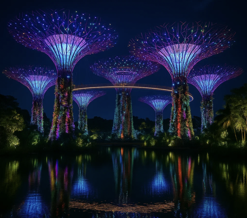 밤이 되면 마리나베이와 가든스바이더베이는 완전히 다른 분위기로 변신합니다. 낮보다 더 로맨틱하고, 조명이 만들어내는 환상적인 경관은 싱가포르 여행의 하이라이트로 꼽힙니다.